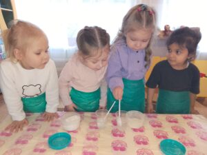 Одним из самых интересных и занимательных дел в детском саду всегда было экспериментирование. Так в младших группах №9 и №10 прошло мероприятие «Лаборатория Почемучек», целью которого было познакомить детей с свойствами воды. Воспитанники как настоящие ученые изучали свойства воды и проводили опыты. Воспитанники вместе с педагогом усвоили, что вода-прозрачна, без запаха, без вкуса, она принимает форму того сосуда, в которой ее переливают, текуча, некоторые вещества растворимы в ней, может менять цвет. Дети с большим удовольствием отвечали на вопросы и отгадывали загадки. Мероприятие прошло интересно и увлекательно. Дети испытали радость открытий, развили любознательность и познавательный интерес. (Новость подготовила: воспитатель Зайцева Т.В.)