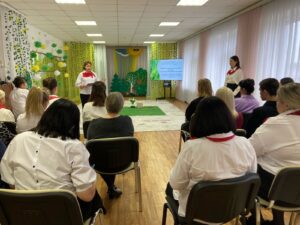 На базе МБДОУ ЦРР-ДС «Сказка» состоялось муниципальное методическое объединение педагогов, посвященное важной теме экологического воспитания дошкольников. Педагогами дошкольного учреждения была подготовлена насыщенная программа. Этюд «Прогулка в лесу» стал ярким примером того, как можно через театрализацию прививать детям важные экологические ценности и правила поведения в природе. Воспитанники, облачившись в костюмы Эколят, с большим энтузиазмом продемонстрировали свои актерские навыки. Старший воспитатель представила опыт работы МБДОУ ЦРР — ДС «Сказка» по экологическому воспитанию дошкольников, озвучив достигнутые результаты по реализации муниципальной инновационной площадки по теме «Организация экологического пространства в детском саду как компонента воспитания обучающихся в условиях реализации ФГОС ДО». Далее воспитатель Кайраманова Н.Б. провела педагогическое мероприятие для детей старшей группы на тему «Растения. Что мы о них знаем?». Педагог использовала разнообразные приемы, чтобы сделать занятие увлекательным и информативным. Завершилось мероприятие дефиле в экокостюмах Эколят из природных материалов и вторичных ресурсов, в котором приняли участие воспитанники всех дошкольных групп. Подводя итоги, руководитель ММО по познавательному развитию Грезнева А.А. высказала общее мнение, что митап, организованный на базе МБДОУ ЦРР-ДС «Сказка», действительно стал значимым событием для педагогов, способствующим получению новых знаний и знакомству с новыми подходами в работе. Представленная программа показала, насколько творчески и эффективно можно организовать процесс экологического воспитания и обучения детей. Новость подготовила Шарова И.С., старший воспитатель