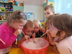 Несмотря на пасмурную и дождливую погоду, сегодня в средних группах 9 и 10 прошел удивительный и веселый День мыльных пузырей! Воспитанники узнали: какие бывают мыльные пузыри, из чего они делаются, научились выдувать пузыри при помощи соломинок, провели множество увлекательных игр, где мыльные пузыри были в центре внимания. Поиграли в подвижные игры «Раздувайся, пузырь», «Поймай пузырь на ладошку», «У кого пузырь больше», «Тесная баночка». Смех заполнил группу, когда дети пытались поймать пузыри руками. Все получили массу положительных эмоций и зарядились хорошим настроением на целые выходные. Новость подготовила воспитатель: Зайцева Т. В. День мыльных пузырей